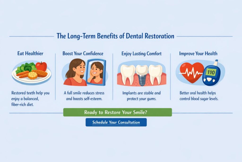 Choosing to replace missing teeth is an investment in your quality of life that pays dividends every time you sit down for a meal. For a diabetic patient, the ability to eat a varied, fiber-rich diet is essential for glucose control. Missing teeth often leads people toward softer, processed carbohydrates that are easier to chew but wreak havoc on blood sugar levels. By restoring your bite, we are giving you back the tools to maintain your health.